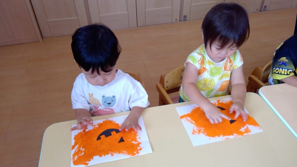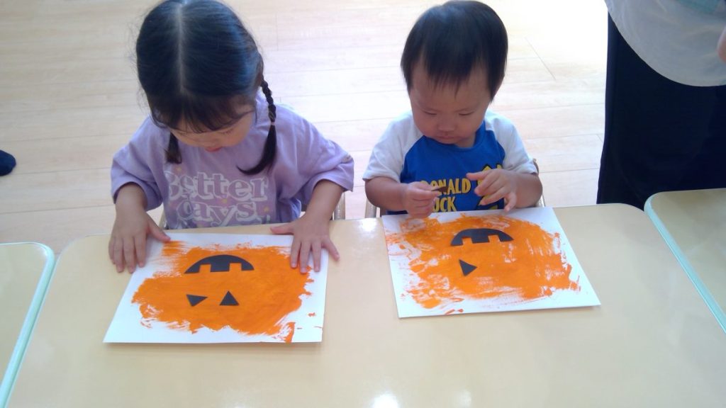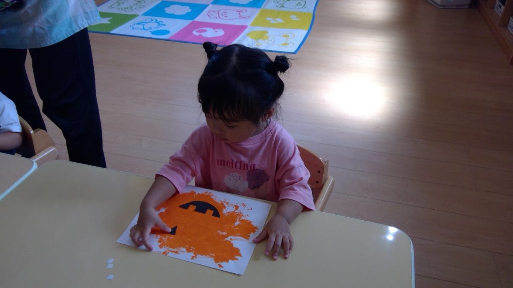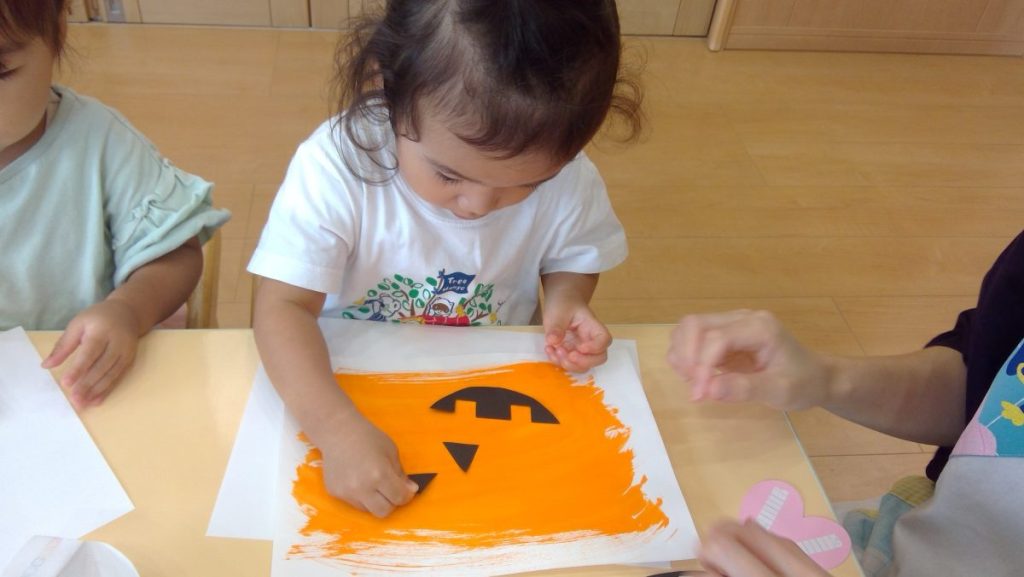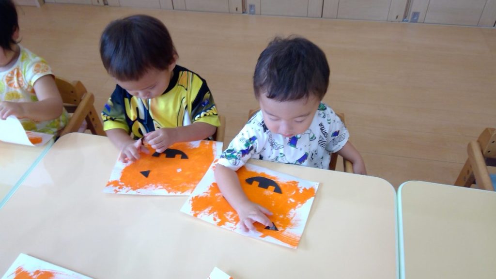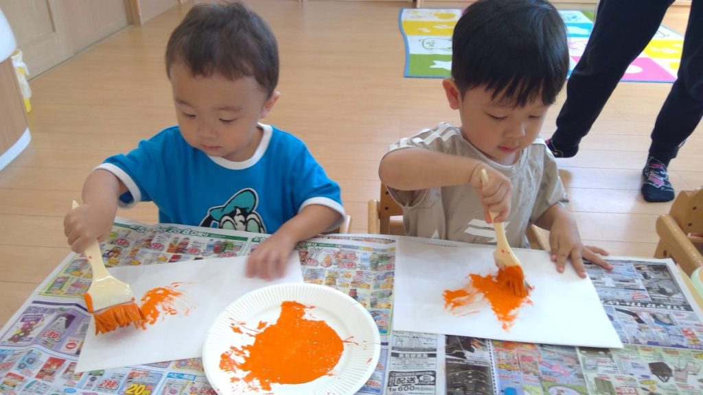 製作で大きな筆を使いカボチャのお化けを作りました👻