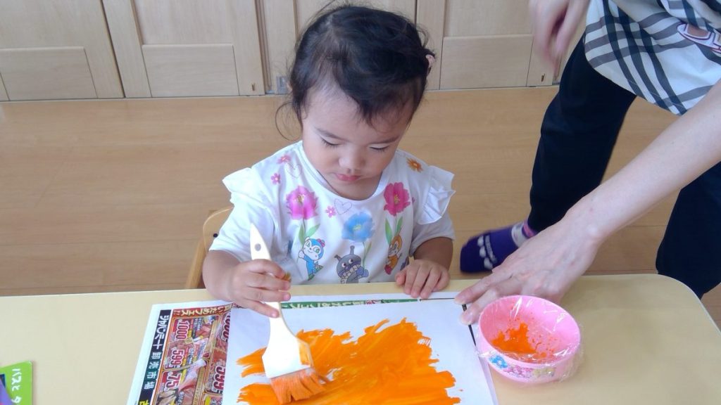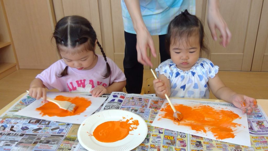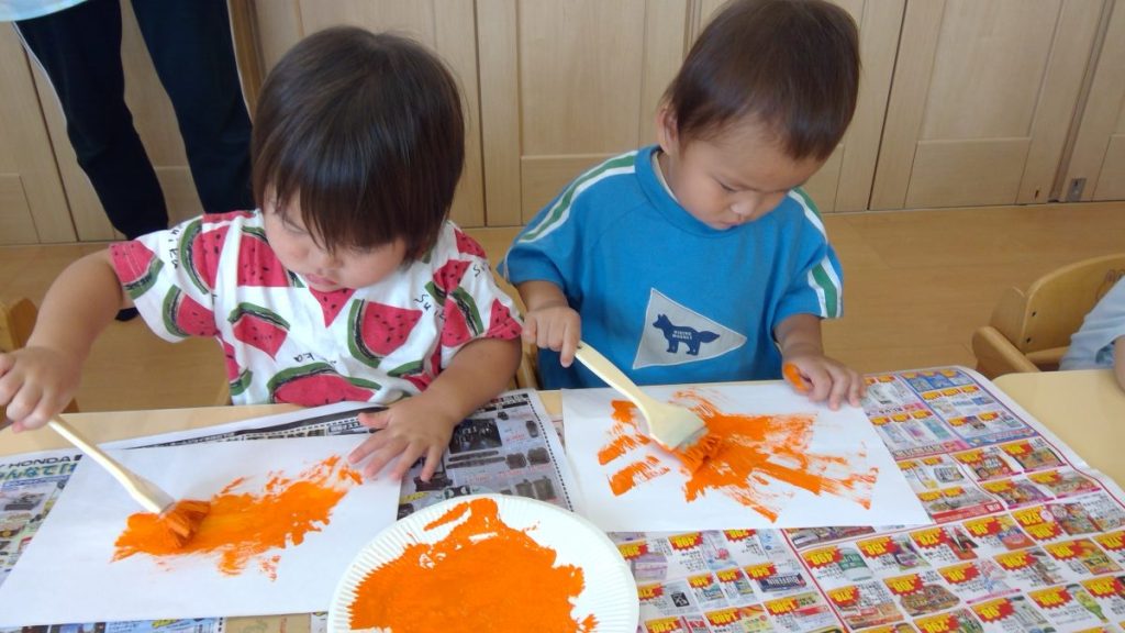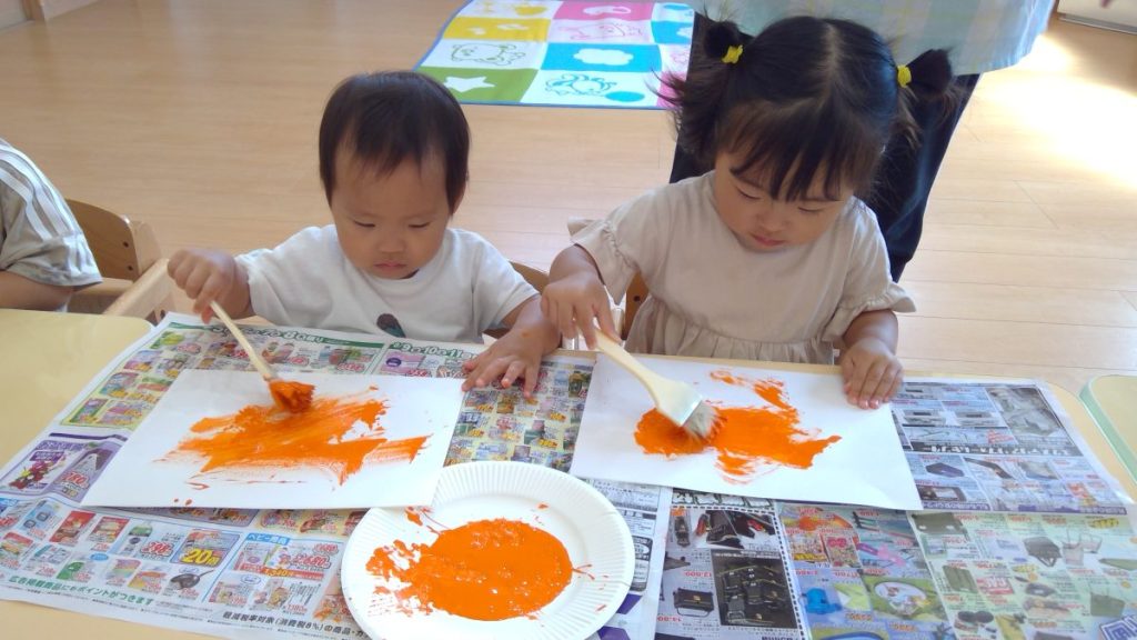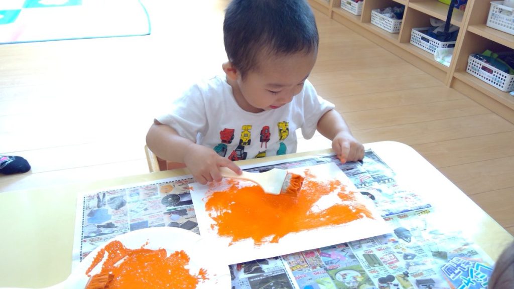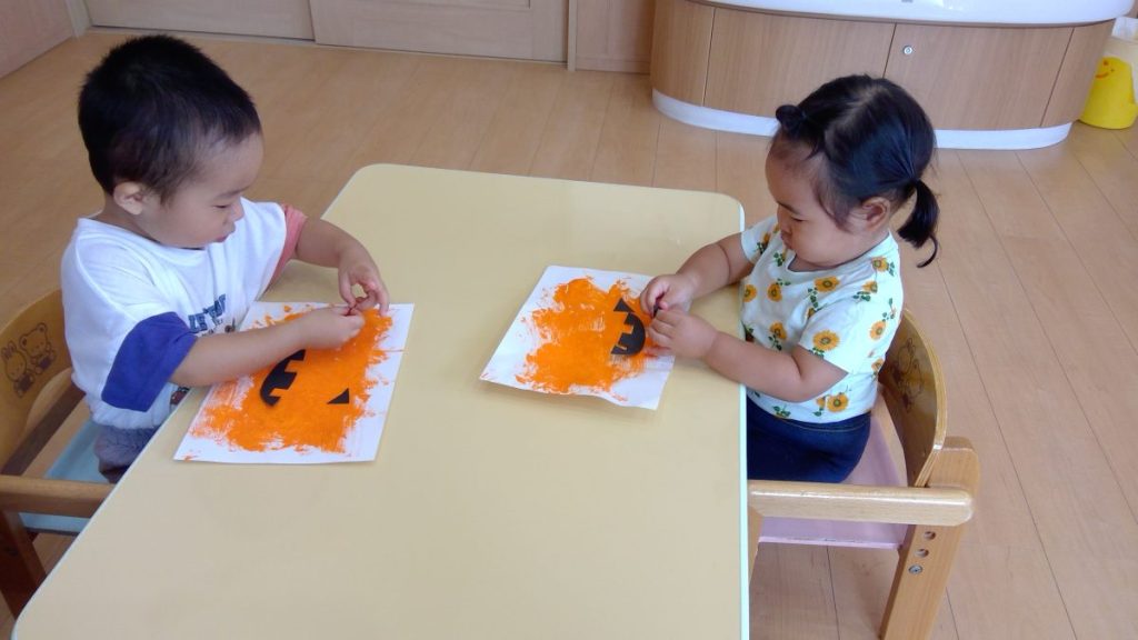 製作で大きな筆を使いカボチャのお化けを作りました👻