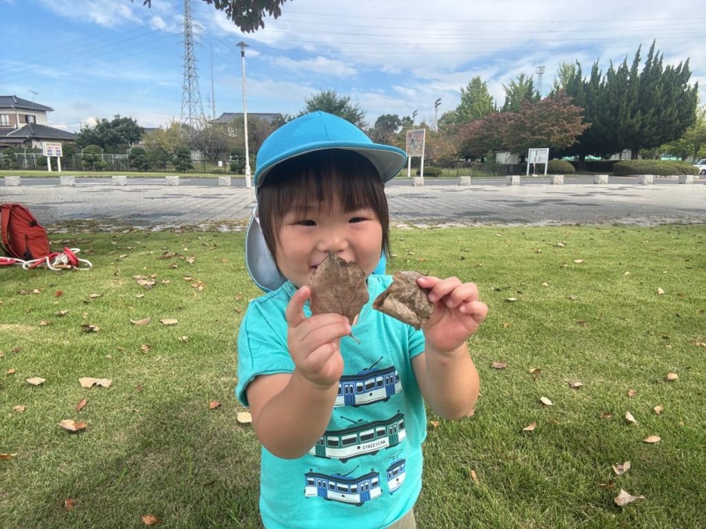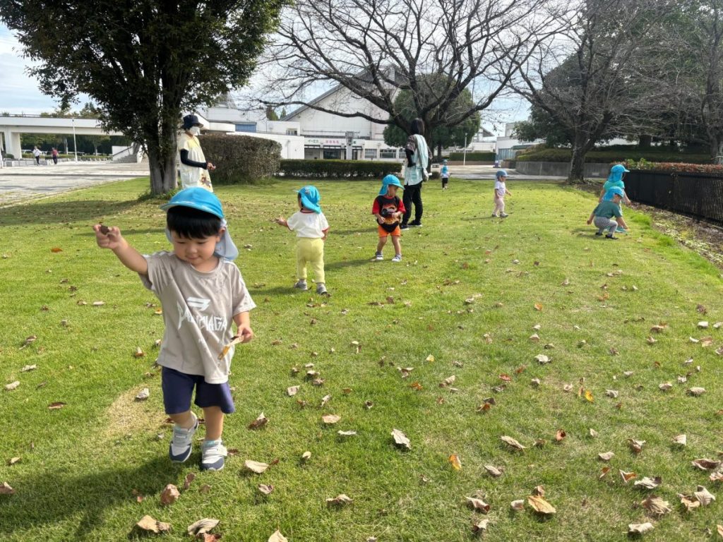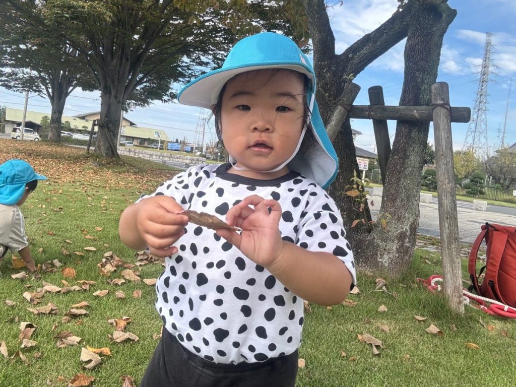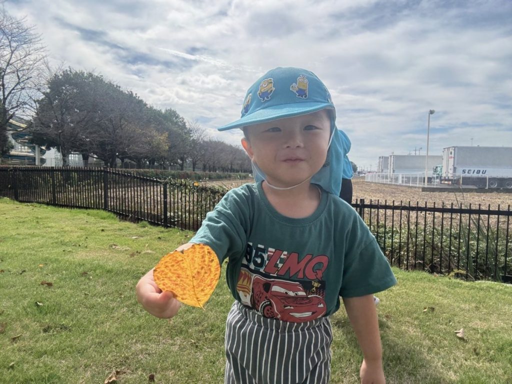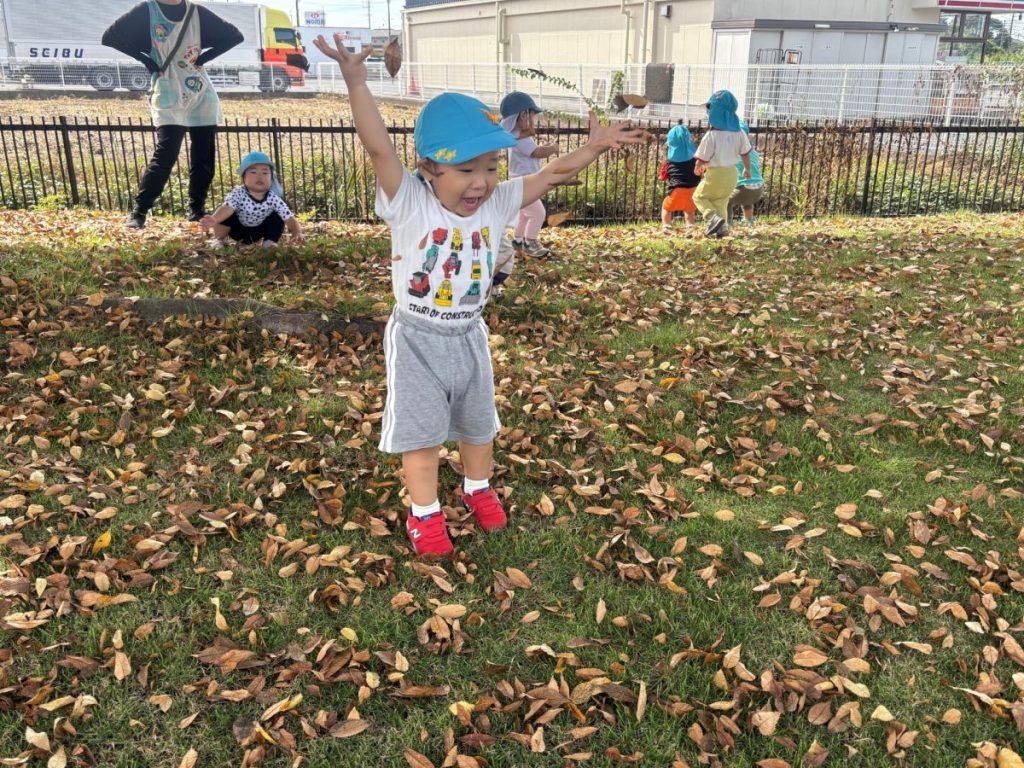 お散歩をたくさん楽しみ、公園で落ち葉遊び🍂