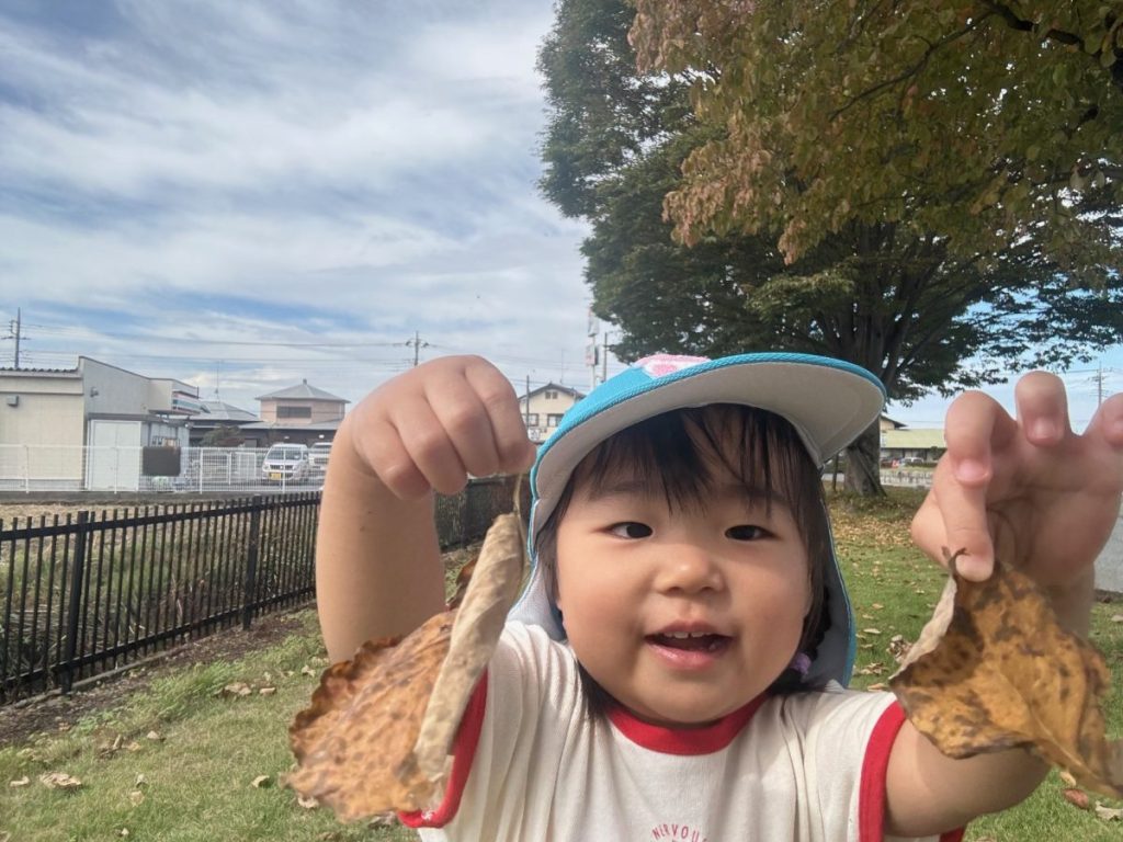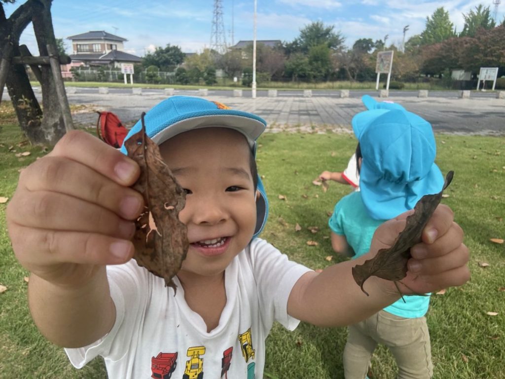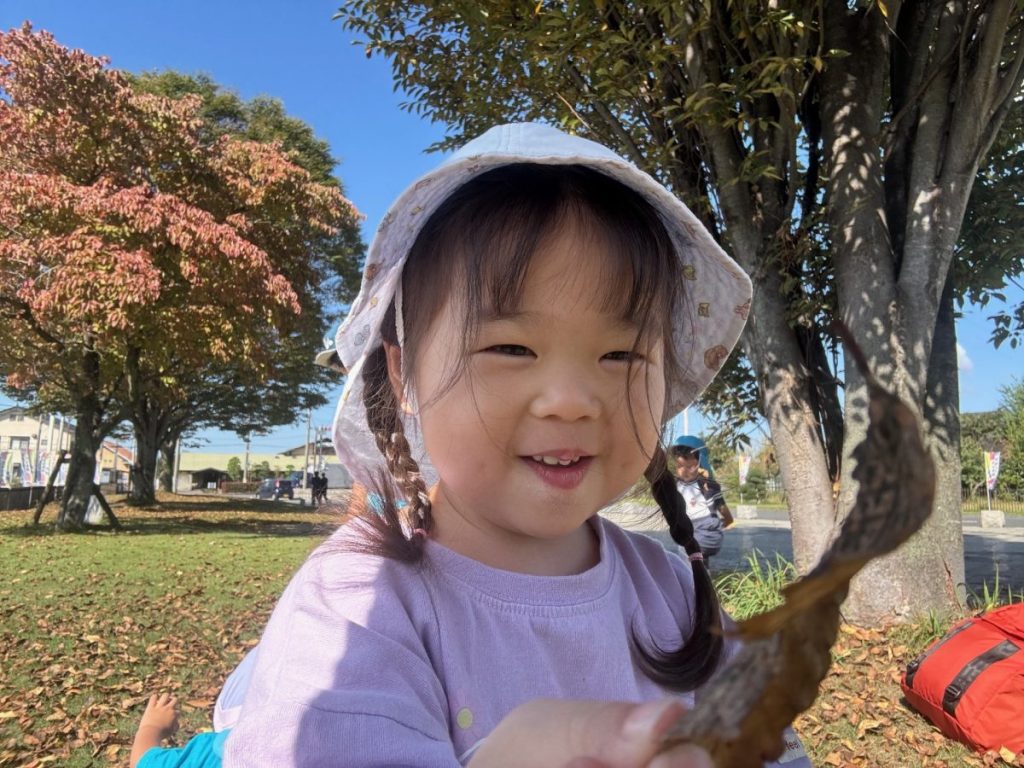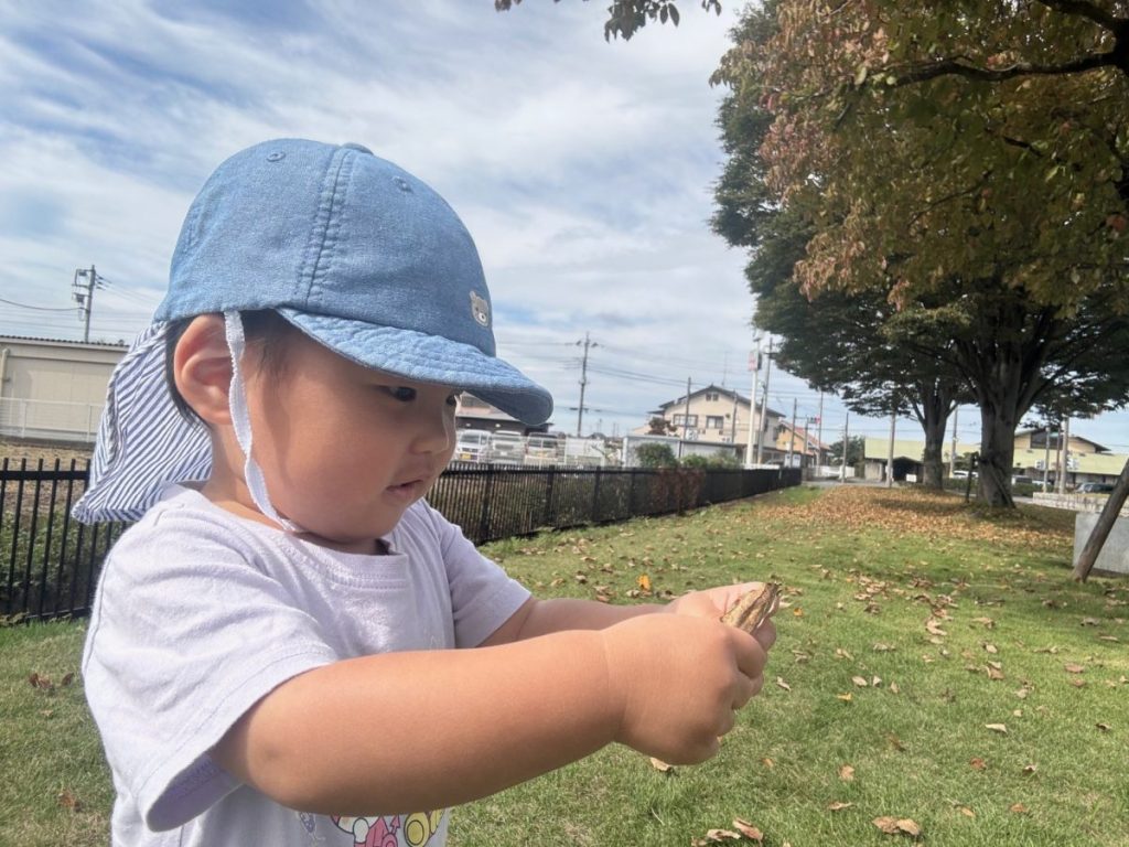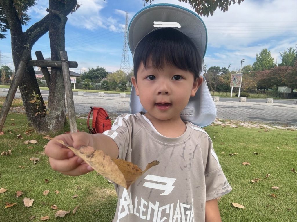 お散歩をたくさん楽しみ、公園で落ち葉遊び🍂